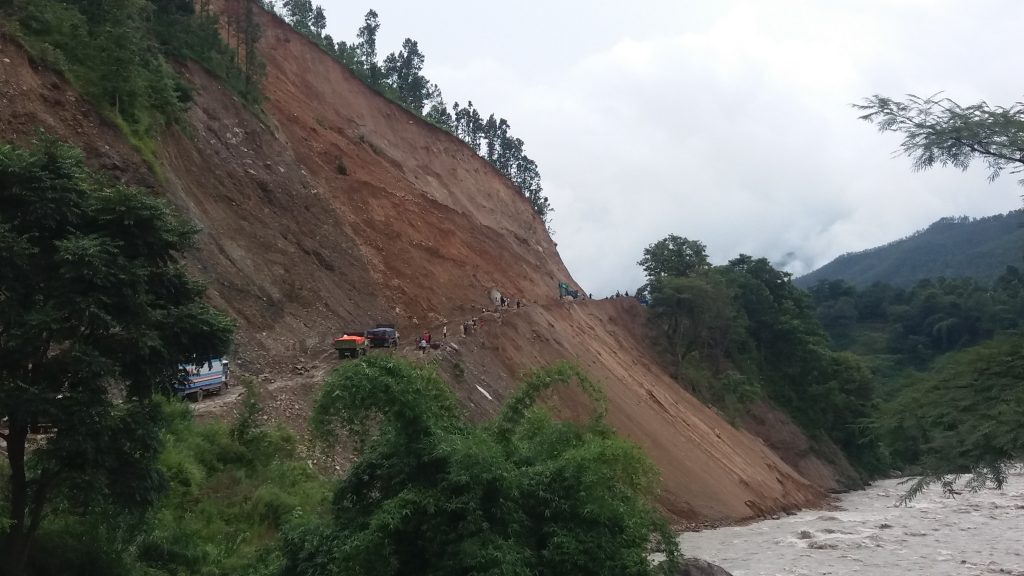 पहिरो खसेपछि तातोपानी भएर भित्रिने मालवाहक सवारी साधन अलपत्र