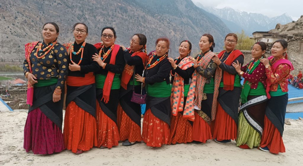 मुस्ताङ जिल्लाको एतिहासिक गाउँ मार्फामा फागुन पूर्णिमा (तेर्मी पर्व)मा रमाउँदै स्थानीय महिलाहरु । फागुन पुर्णिमाको दिनदेखि करिब ६ दिनसम्म चल्ने स्थानीयहरुले तेर्मी पर्व मनाउने गरेका छन् । तस्बिर : सुशीलबाबू थकाली/रासस