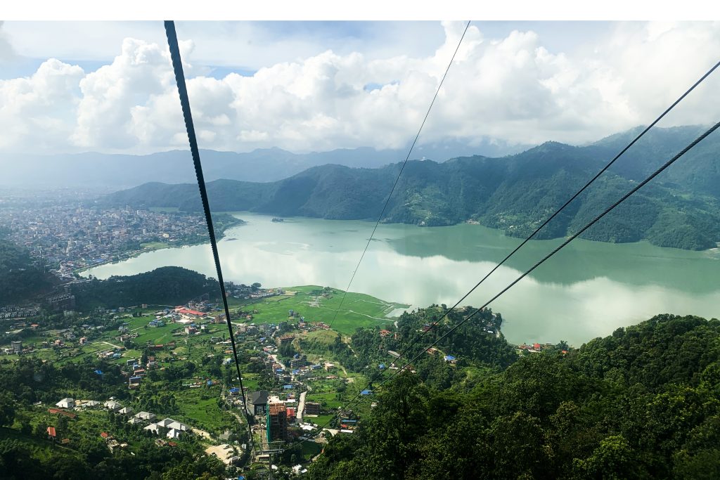 पोखरामा सञ्चालित अन्नपूर्ण केवलकारबाट देखिएको फेवाताल र आसपास क्षेत्र । तस्बिरः धनबहादुर गुरुङ/रासस