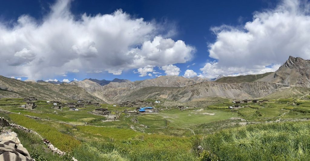 उपल्लो डोल्पाको शे–फोक्सुण्डो गाउँपालिका–१ स्थित कोमाङ गाउँ । यहाँको मुख्य पेसा भनेको भेंडा, बाख्रा पालन हो । प्रत्येक घरमा १०० भन्दाबढी भेंडा, बाख्रा पालन गरिन्छ भने खेतीको रुपमा वर्षमा एक बाली उवा पाक्ने गर्छ । तस्बिरः हेमन्त केसी/रासस