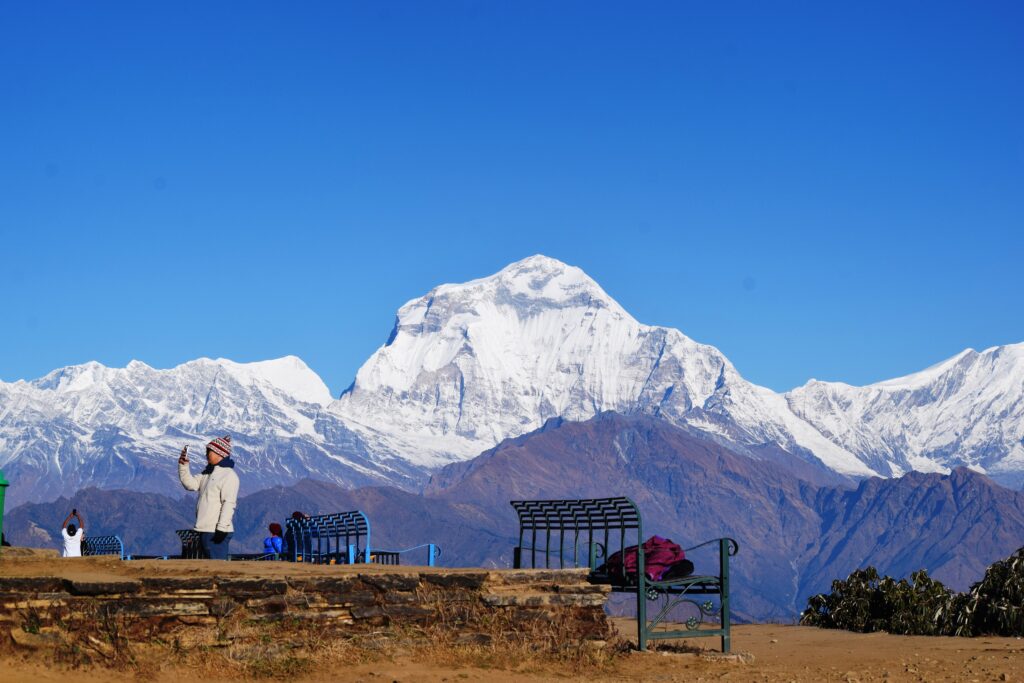 म्याग्दीको अन्नपूर्ण गाउँपालिका–६ स्थित पर्यटकीय स्थल पुनहिलबाट देखिएको धौलागिरी हिमालको मनोरम दृश्य। तस्बिर: कमल खत्री / रासस