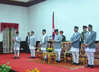 काठमाडौँ । राष्ट्रपति रामचन्द्र पौडेलले नवनियुक्त प्रधानन्यायाधीश प्रकाशमान सिंह राउतलाई पद तथा गोपनीयताको शपथ गराउनुभएको छ । राष्ट्रपति भवन शीतल निवासमा आज आयोजित कार्यक्रममा राष्ट्रपति पौडेलले प्रधानन्यायाधीश राउतलाई पद तथा गोपनीयताको शपथ गराउनुभएको हो । शपथग्रहण समारोहमा उपराष्ट्रपति रामसहायप्रसाद यादव, प्रधानमन्त्री केपी शर्मा ओली, सभामुख देवराज घिमिरे, राष्ट्रियसभाका अध्यक्ष नारायणप्रसाद दाहाल, उपप्रधानमन्त्री,उपसभामुख, मन्त्रीहरू, सर्वोच्च अदालतका न्यायाधीशहरू, संवैधानिक अङ्गका प्रमुख, सुरक्षा निकायका प्रमुखलगायत उच्च पदस्थ अधिकारीको उपस्थिति थियो । राष्ट्रपति पौडेलले राउतलाई आज बिहान प्रधान न्यायाधीश पदमा नियुक्त गर्नुभएको थियो ।