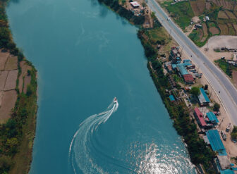 तनहुँको आँबुखैरेनी गाउँपालिका–२ स्थित मर्स्याङ्दी जलविद्युत आयोजनाको जलाशय र नजिकै किनारामा रहेको पृथ्वीराजमार्ग । मर्स्याङ्दी जलविद्युत आयोजनाको जलाशयमा आइतबारदेखि मोटरबोट सञ्चालनमा आएको छ । तस्बिर ः कृष्ण न्यौपाने / रासस